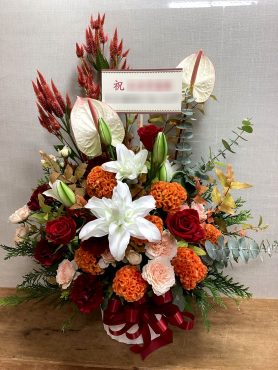 お祝いアレンジメントフラワーの配達ご注文をいただきました